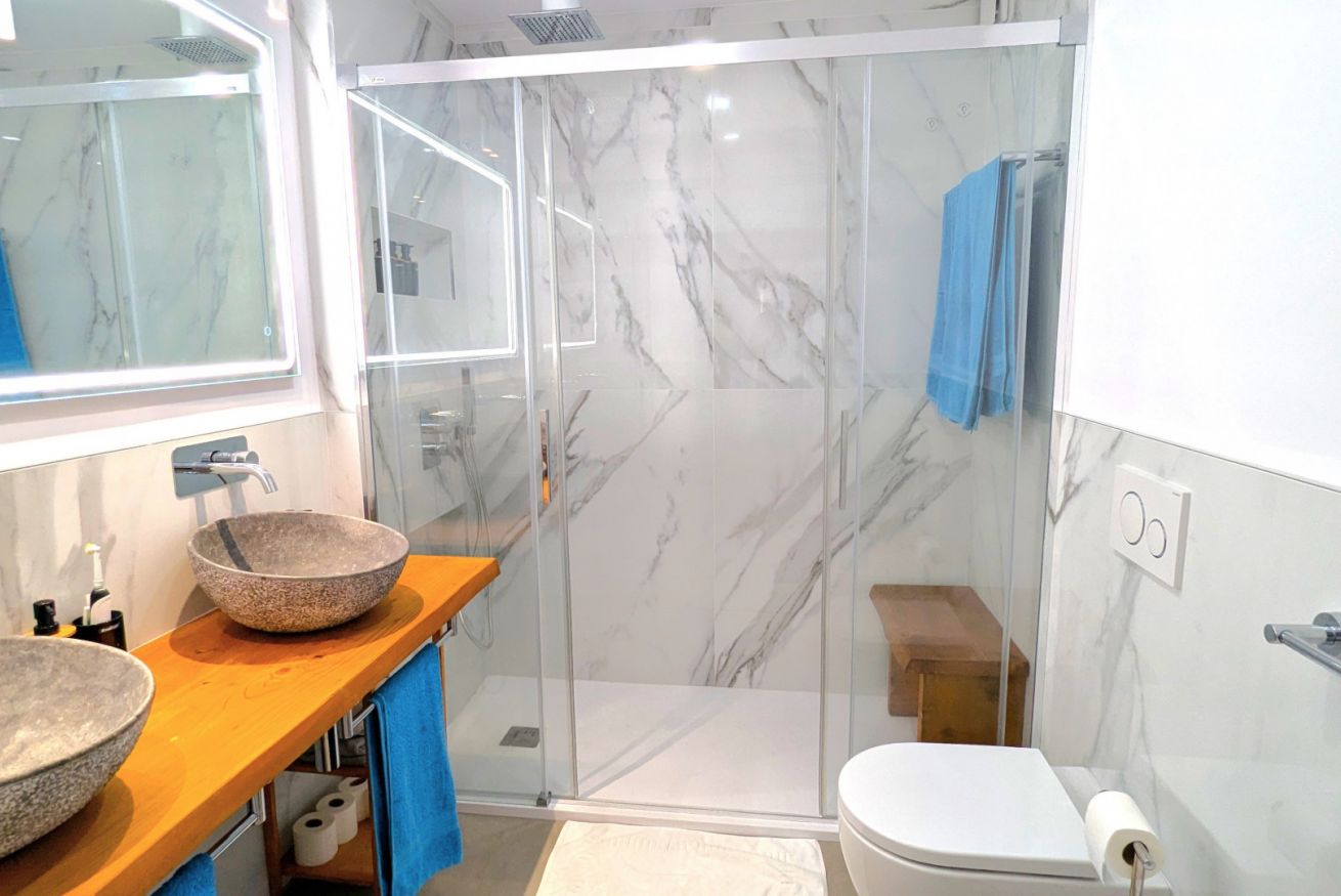 La camera doppia aveva un armadio matrimoniale e risiede accanto al bagno dotato di cabina doccia.