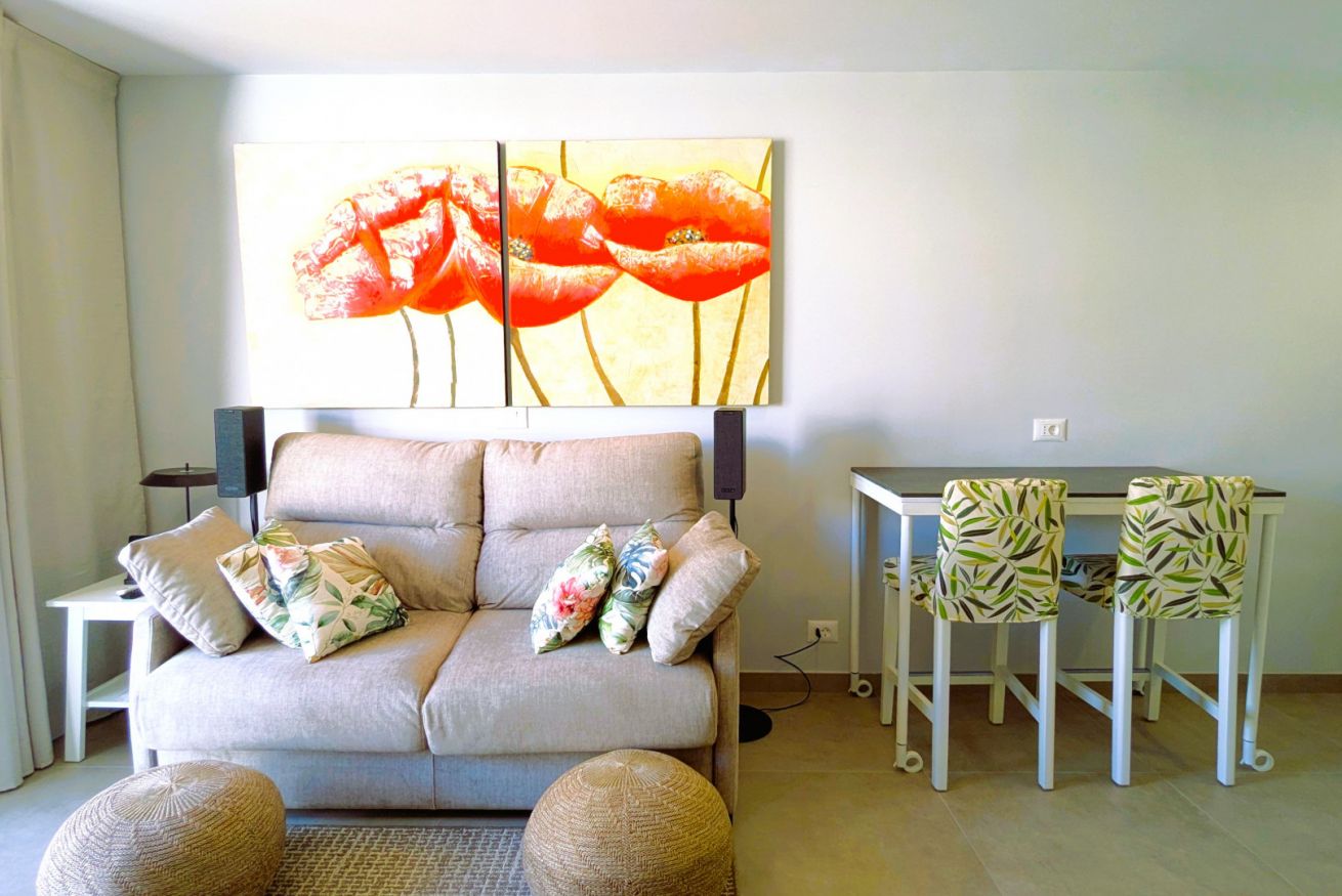 Centrale, elegante e confortevole appartamento di 45m² (490sf) nel cuore del sud di Tenerife. Completamente arredato e con tutti i comfort, tra cui WiFi gratuito e smart TV, che lo rende perfetto per i turisti e chiunque cerchi una casa lontano da casa.